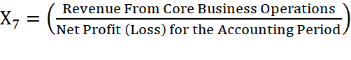 (6)Variable X7 represents the ratio of revenue from core business operations to net profit for the accounting period. A lower value suggests that the company efficiently converts sales into profit. The calculation structure for X7 is displayed in Equation (7)