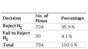 𝑯1= The average Zavgren model score for construction firms in Colombia in year is less than 0.6.