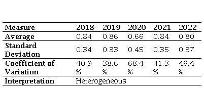 If CV > 0.7𝑥̅, the data set is highly heterogeneous relative to the mean.