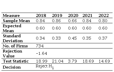 𝑯0= The average Zavgren model score for construction firms in Colombia in year is equal to or greater than 0.6.
