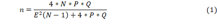 (1)En esta ecuación, 4 es una constante, N el tamaño de la población, P la probabilidad de éxito, Q la probabilidad de fracaso y E el error muestral (Chávez, 2007); esta fórmula es aplicada considerando el muestreo aleatorio simple y su cálculo se desarrolló mediante hojas Excel. La información fue analizada de forma sistémica y con estadística de tipo descriptiva para darle veracidad a los datos recabados, haciendo referencia a un proceso metodológicamente estructurado en el que el análisis sistemático implicó la organización rigurosa, coherente y lógica de los datos, siguiendo criterios previamente establecidos para garantizar la validez interna del estudio. El enfoque mixto permitió examinar las relaciones, patrones y estructuras de las actividades comerciales, considerando el contexto del fenómeno investigado. Por otra parte, el análisis estadístico descriptivo permitió el uso de herramientas básica de Excel que ayudaron a determinar los porcentajes y las frecuencias absolutas y relativas, para presentar la información de manera clara, objetiva y comprensible (López, 1998; Hernández Sampieri et al., 2018).