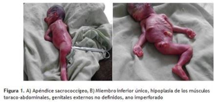 Distintos autores(7,8) encuadran todas estas malformaciones dentro de un mismo síndrome de regresión caudal o secuencia sirenomelia (SS)". Lo anterior explica los defectos congénitos, dados por malformaciones en diferentes órganos, que se reportan en el presente caso, los cuales ocurrieron durante el período de organogénesis.