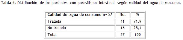 El 71,9 % de los pacientes ingieren agua tratada (tabla 4).