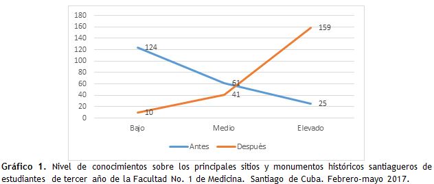 Antes de la aplicación de la multimedia solo el 11,9 % de los encuestados poseía un elevado nivel de conocimiento sobre el tema, después de ser aplicado el producto este porciento aumento hasta el 75,7 % (gráfico 1).