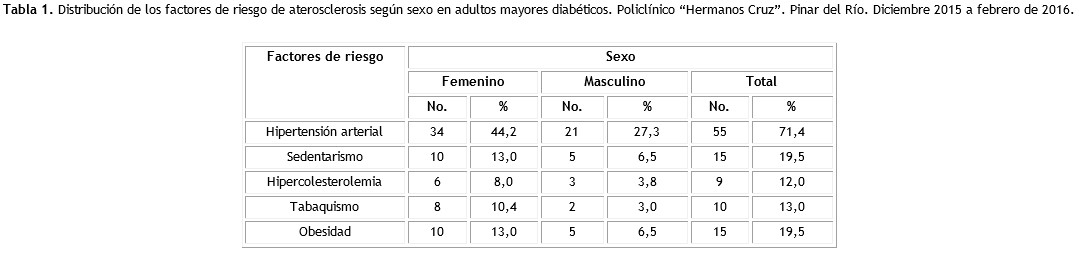 Objetivo: identificar los principales factores de riesgo de aterosclerosis en adultos mayores con diabetes mellitus tipo 2 de un consultorio médico.