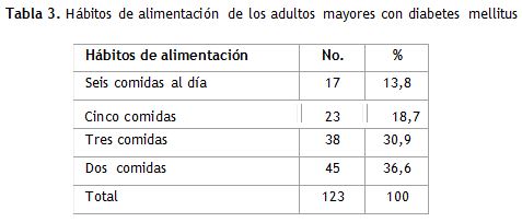 El 67,5 % de la muestra estudiada refirió consumir entre dos y tres comidas al día (tabla 3).