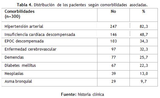 Entre los pacientes con NAC predominó como comorbilidad la hipertensión arterial en el 82,3 % de los casos (tabla 4).