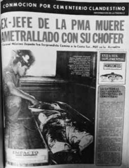 El título de la nota que funcionó como anclaje de la fotografía: "Coronel Máximo Zepeda Martínez Acribillado", únicamente develó una parte de lo que se ignora de la imagen, por ello se requirió de un reforzamiento como lo fue el pie de foto para conformar "significados y asociaciones destinadas a ser apreciadas por un observador".61 El discurso gráfico contiene en sí un alto sesgo ideológico, el cual fue consolidado con los reportes de la policía que destacan la presencia comunista en los hechos: