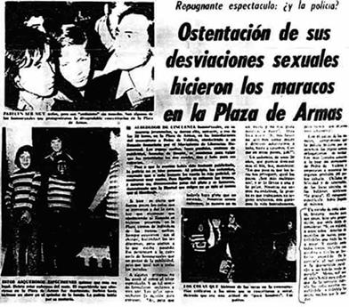 Lo que explica la primera movilización homosexual registrada en Chile en 1973 en pleno gobierno de la Unidad Popular, en donde un grupo de 25 personas de estrato popular protestaron en la Plaza de Armas de Santiago para demandas el abuso policial que, precisamente, se validaban en el artículo 373 y 365 del Código Penal chileno (Robles 2008). Paralelo a esto, otros sitios de encuentros anónimos y clandestinos fueron cines, parques y baños públicos, además de prostíbulos ubicados en distintas partes de Santiago que incluían oferta de prostitución homosexual travesti junto con prostitutas mujeres (Contardo 2011).
