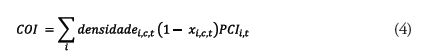 Segundo Hausmann et al. (2014), o COI seria um adequado indicador preditivo de mudanças futuras na complexidade econômica de determinada região, podendo indicar a rapidez com que essa localidade seria capaz de adquirir novas capacidades produtivas. Cabe considerar que a plataforma Dataviva não oferece essa medida em sua base de dados. Para calculá-la foi preciso agregar os dados de densidade (medida da distância de determinada região para cada um dos produtos que ela ainda não exporta com vantagens comparativas), desenvolvidos por Hildalgo et al. (2007), e a VCR de todos os produtos não exportados por cada um dos 27 estados. Assim, os índices de ECI e COI serão utilizados como “proxy” para analisar e comparar os estados brasileiros em termos de complexidade e facilidade em adquirir novas capacidades produtivas no futuro.