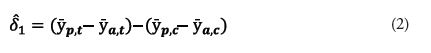 A diferença entre essas variações é o estimador de diferenças em diferenças e corresponde à variação média em y para todos os indivíduos que estão no grupo de tratamento menos a variação média em y para todos os indivíduos que estão no grupo de controle. Então, o estimador de diferenças em diferenças pode ser denotado também como: