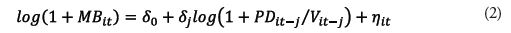 Seguindo a metodologia proposta por Cohen, Dietther e Malloy (2013), estimou-se a habilidade para inovar em vendas por meio de regressões rolling do crescimento de vendas definido por log(Vt/Vt-1), contra o investimento passado em P&D, medido por log(1+PDt-j/Vendast-j), onde j representa a defasagem do investimento em P&D, conforme as equações 1 e 2: