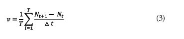 Onde T é o intervalo total de tempo da série; o termo corresponde à taxa de adoção por unidade de tempo, já que é o número de adotantes no tempo , e é o número de adotantes no tempo imediatamente posterior ; e representa a média das taxas marginais de adoção obtidas na razão entre e , ou seja, o percentual médio de novos adotantes por ano.