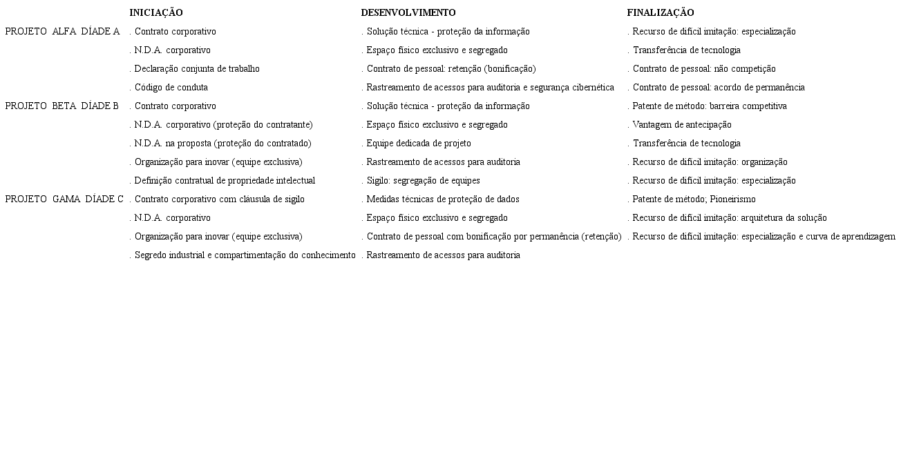 Na etapa de iniciação foram aplicados mecanismos contratuais corporativos, como N.D.A. e cláusula de sigilo, buscando cobertura contratual mesmo após o término da relação de colaboração: