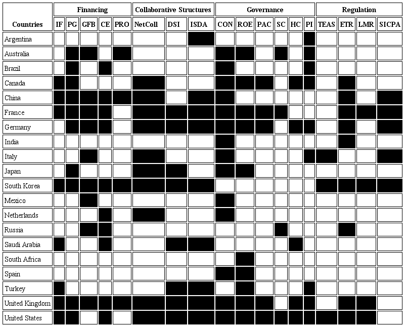 The instruments were analyzed to compose a table on each country's instruments in financing portfolios, collaborative structures, governance, and technology regulation. Table 3 below presents the initial conditions of the research design, associating the instrument portfolios.