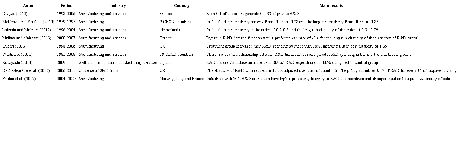 Regarding the effectiveness of R&D tax incentives, there is a large amount of evidence that tax credits have a significant positive effect on R&D expenditure, both short and long term.5 The extent of these positive input effects varies according to the country, estimation method and model specification. Table 1 lists some relevant studies consulted for this review.