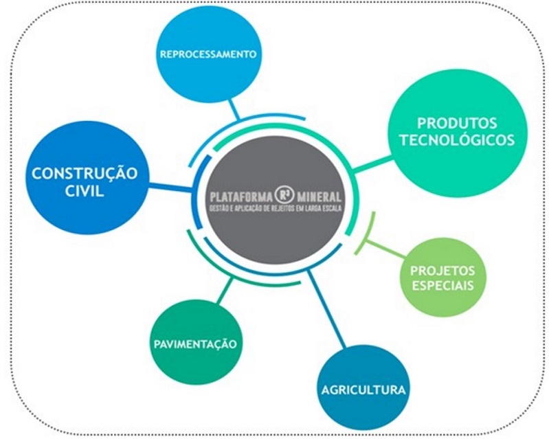A atuação da Plataforma seria voltada para a identificação de tecnologias para o reaproveitamento de rejeitos de minério de ferro gerados na região do Quadrilátero Ferrífero do estado de Minas Gerais. Em especial, cabe destacar o desenvolvimento prévio pelas universidades incluídas na plataforma de pesquisas visando a reutilização de rejeitos de minérios em aplicações produtivas, sobretudo na cadeia da construção civil. Logo, um dos resultados esperados quando da estruturação da plataforma seria a absorção e utilização desse conhecimento gerado pelas instituições de pesquisa pelos agentes do setor produtivo.