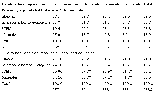 Con la "revolución de las habilidades", el futuro del trabajo pasaría a depender casi exclusivamente de las fuerzas cerebrales humanas asociadas con la flexibilidad derivada de las capacidades de procesar, integrar y comunicar muchos tipos de información para realizar tareas complejas (LEVY; MURNANE, 2013). En esta visión, los empleadores deben centrarse en crear un ambiente que aproveche las capacidades estrictamente humanas, como la curiosidad, la imaginación, la creatividad y la inteligencia social y emocional. Si bien la necesidad de habilidades técnicas sigue siendo fuerte, la necesidad de personas con habilidades de comunicación, interpretación y pensamiento sintético adquiere una importancia mayor. Estas funciones requieren nuevos tipos de habilidades sociales que rara vez se desarrollan a través de cursos técnicos formales. Se trata de un tipo de habilidades llamadas “blandas” que se relacionan con cualidades interpersonales o intrapersonales necesarias para que el individuo interactúe y progrese profesionalmente.