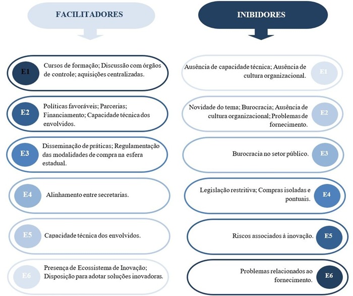 “Por enquanto, observa-se que as iniciativas de compras públicas de inovação têm sido realizadas isoladamente. Entendemos ser necessário uma política mais abrangente para que possa haver um real incentivo do Estado para essa questão” (E3).