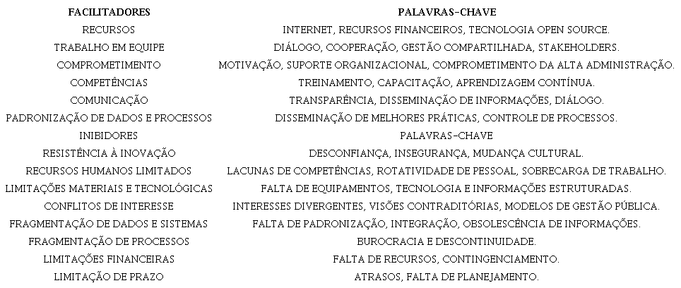 Em linha com esses achados preliminares, a pesquisa mapeou, com base na experiência dos gestores estaduais de CT&I, os fatores que afetam a implementação das CPIs, destacando os facilitadores e os inibidores, conforme descrito na Figura 1.