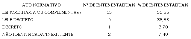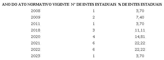 De acordo com a Tabela 2, todos os atos regulamentadores estaduais são posteriores a Lei nº 10.973/2004. Contudo, quatro estados (Alagoas, Ceará, Sergipe e Tocantins) não atualizaram suas regulamentações após a reforma de 2016 (Lei n° 13.243/2016). Além disso, apenas Espírito Santo, Santa Catarina, São Paulo, Minas Gerais, Rio Grande do Norte, Amazonas e Distrito Federal atualizaram suas normas após o Marco Legal das Startups. Assim, pelo menos 74% dos estados com normas de inovação ainda não estão alinhados com a nova legislação nacional.