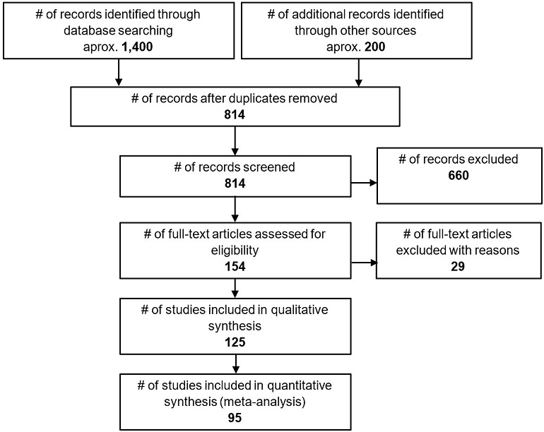 The target population consists of quantitative academic articles that investigate the sources of Innovative Performance (IP) at the firm level. Keywords and inclusion criteria were developed based on contributions from Becheikh, Landry and Amara (2006) and Cohen (2010). Consequently, the main sample includes 95 articles that meet the following criteria: i) are published between 1993 and 2017; ii) are written in English; iii) analyze the firm level; iv) are oriented towards the manufacturing sector; v) have econometric models that take into account IP; vi) consider IP as a dependent variable; vii) are related to technological innovation topics; viii) have a continuous operationalization of firm size; ix) are extracted from journals ranked in Citescore.