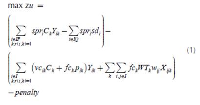 Through an interface in Excel®, the user feeds the model and calls the solver. Then, the output is translated again through the interface into an Excel output file. The model was coded in GAMS® software with the CPLEX® solver version 22.6 and run on a computer with 1.99 GB of RAM, with an Intel Xeon (R) CPU 5150 at a speed of 2.66 GHz, working under the windows operating system XP.