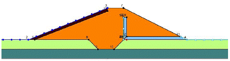 In addition, analyses were also performed without the foundation layer in order to evaluate the effect of the presence of this material on the stability of the upstream slope. Figure 7 shows the adopted geometric model.