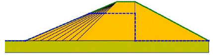 This suggests that, eventually, the final construction situation may be the determining factor for the upstream slope of a homogeneous dam.