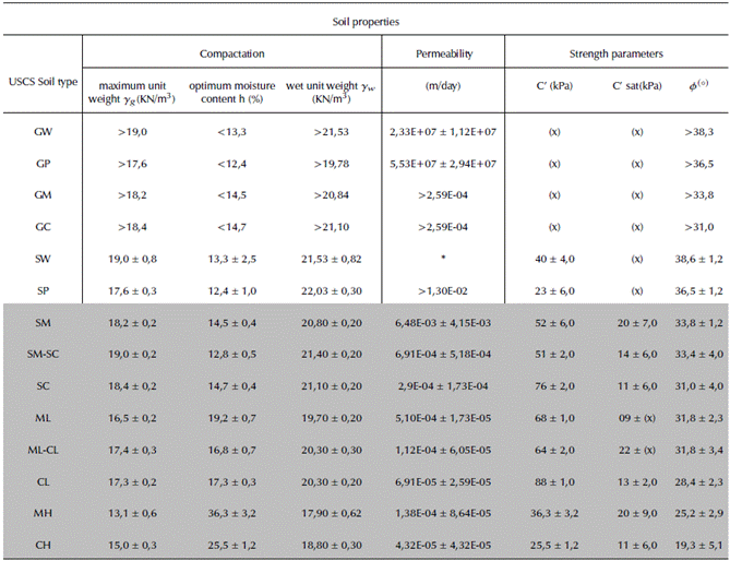 Table 4 presents the summary of the geotechnical properties obtained in laboratory tests for SC soil of the experimental dam: