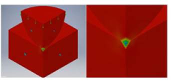 According to Bhattacharyya et al. (2017) and Satyanarayana and Melkote (2004), the contact between a sphere and a flat plate can be simplified to 1/4 of the model due to the contact symmetry, thus maintaining the same characteristics of whole model. Therefore, a computational 1/4 model of the sphere and the flat plate (which represents the inner ring of the bearing) was constructed by means of the FEM software Inventor and Nastran in-CAD, as seen in Figure 4.