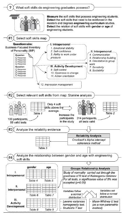 This research was classified as descriptive, since the general objective was to determine the skills already developed by graduates in engineering, in order to address the lack according to the needs of the job market. In this sense, we tried to identify and characterize a series of soft skills, highlighting their qualities and characteristics. It was a non-experimental, cross-sectional design that simultaneously collected data, particularly during the months of April 2015 to June 2018. The research focused on a population of undergraduates in different engineering disciplines in Italy. Out of this population, an accidental sample was developed through the Department of Engineering of the University of Roma Tre, through personal contacts with a snowball sampling, and thanks to the publication of the questionnaire in different social networks.