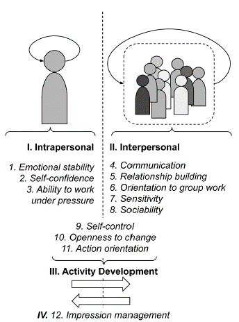 Relationship building: It is close to the Big Five Model extroversion construct (McRae and Costa, 1987), but there are differences with the present research. In this case, it concerns the development of interpersonal relationships and the creation of a network of contacts.