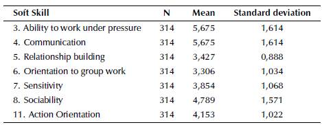 The final sample used consisted of 314 people. Although it is a small sample, it must be considered that more than 1 000 responses were received. However, only those persons who were students and graduated within two years after taking the survey were considered. This is because we wanted to determine the soft skills of the graduates, but we also desired to know the needs of the students, in order to adapt them to the curriculum. The result was a small but qualified sample.