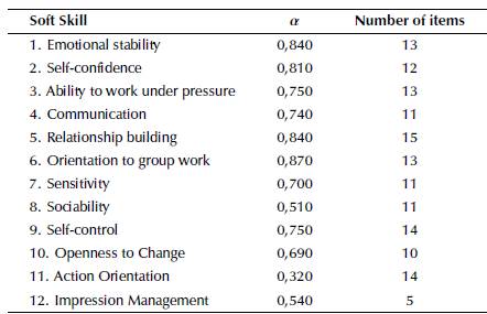 In the first phase of the research, the first deep analysis was performed on a sample of 100 subjects, but only 88 questionnaires were considered valid. The fee costs and time invested in carrying out a complete test is very high. For this reason, a first sample was chosen to determine which soft skills should be analyzed in more detail. This research was intended to verify that soft skills were below the reference group average of the questionnaire. In this case, with a representative sample of 88 subjects, with scores above the average and with the knowledge that, by shortening the test, more subjects would be reached. Table 1 shows the high scored soft skills in engineering students.