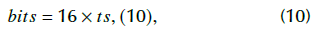 The result is a matrix of ts x 16, named 'S". Finally, every sequence of 16 bits of S is transformed into a floating point value, in the range of [-1 1], as a sample of the ciphered audio. It is saved as a WAV file with a specific value for frequency sampling fs (e.g., fs= 8 kHz). Time (in seconds) of the ciphered audio is defined by Equation 3: