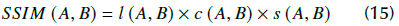 Structural Similarity Index (SSIM): Consider the comparison of two images (A and B), considering luminance (l), contrast ( c), and structural (s) terms, as follows: