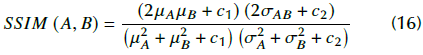 where µ is the mean, σ is the standard deviation, and CC1, C2 , and C3 are constants. With the above results, SSIM is obtained via the following multiplication: