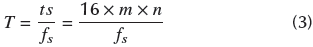 Splitting the binary code and creating the audio file : Next, it is necessary to split the binary code into 16 bit words. Each orthogonal code has 16 sub-blocks of 16 bits by block. According to Equation 2, the total number of sub-blocks, ts, is equal to: