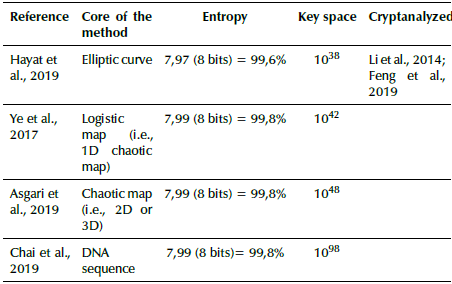In summary, many proposals of methods concerning image encryption have very high entropy values, but suffer from security weaknesses. However, there are some non-traditional proposals that have yet to be cryptanalyzed. The lingering issue with these proposals is that their entropy values are not high enough. Therefore, it can be generally stated that systems that focus on privacy do not possess optimal security, and vice-versa. As a result, the trade-off between security and privacy is still a challenge to be overcome. It is thus necessary to increase the key space and equalize the likelihood in encryption keys for methods based on chaotic mapping while also improving the degree of ciphered data uncertainty in non-traditional schemes.