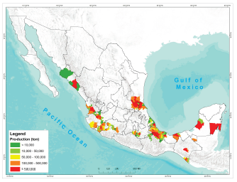 In Mexico, sugarcane production generates more than 2 million jobs, both directly and indirectly, and is carried out in 15 federal states and 227 municipalities (Figure 2). The 2018/19 harvest was conducted in 50 sugar mills. The harvested area was 804 060 ha, producing 57 036 700 t of cane to be ground, with a field yield of 70 936 t/ha, a production of 6 425 919 t, with a factory yield of 11 266%, and an agroindustrial yield of 7 992 t of sugar/ha. Veracruz produces 40% of the total domestic production of cane and sugar (CONADESUCA, 2019).