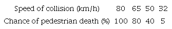 Tefft, B.C. (2011). Impact Speed and a Pedestrian's Risk of Severe Injury or Death. Washington, D.C., USA: AAA Foundation for Traffic Safety. 10.1037/e550422012-001