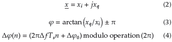 In Kemao, Hoai Nam, Feng, and Hock Soon (2007) and Qudeisat, Gdeisat, Burton, and Lilley (2011), the wrap phase is extracted using the four quadrant arctangent operator. In another research (Kumm et al., 2010), two input signals with different frequency ∆f and with initial phase value ∆φ0 are used to detect the phase angle: a complex signal (2) and a trigonometric relation signal (3). The trigonometric relation is a four quadrant inverse tangent (4).