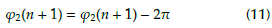 The result obtained by Equation(10) is not useful to carry out the Walsh method to generate a square pulse for synchrony (Rueda-Germán, Rivas-Cambero, Arroyo-Núñez, and Coyotl-Mixcoatl, 2019). Thus, a wrap method is required. The traditional wrap Equation (11) is based on the fact that, if the value of the future angular frequency (φ2(n + 1)) is greater than n, it is reduced by 2ϖ.