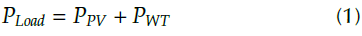 The power curtailment of each RES unit can be defined proportionally to its maximum available power (PPVMP) and (PWTmp), which can be obtained from maximum power point tracking methods such as the one presented by Trujillo Rodríguez, Díaz Aldana, and Hernández Mora (2015) and Patsios Chaniotis, Rotas, and Kladas (2009) for PV and WT, respectively. Thus, Equation (1) can be rewritten as: