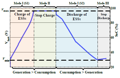 Mode Ill. The ESS reaches its minimum charge levels of charge and the load should be disconnected to avoid over-discharge.