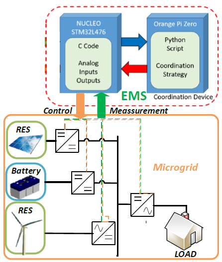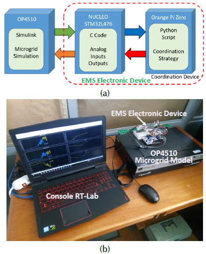 In order to validate the performance of a designed EMS device, it is possible to use dedicated test platforms in which microgrid behavior, power electronic devices, and primary controllers can be simulated in real-time, while the physical hardware, where the EMS and control actions are embedded, is integrated into a closed-loop in order to emulate a real interaction with the microgrid (Casolino, Russo, Varilone, and Pescosolido, 2018; Wang, Nguyen, Xu, and Shi, 2020). These kinds of experimental platforms are defined as hardware-in-the-loop (HIL) and are commonly used an accepted for the validation of control and management strategies in a real hardware environment (IEEE, 2018). HIL allows a rapid prototyping and performance test of the electronic device by emulating the behavior under real conditions without complex lab setups (Montoya et al., 2020; Estrada, Vázquez, Vaquero, de Castro, and Arau, 2020; Sun et al., 2020).