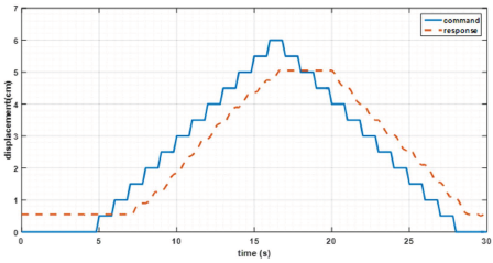 The trajectory following command is used for the input and output signals to determine the suitability of the response to the given command. The results of the trajectory graph of the given signal command and the response ares shown in Figure 11. Based on these results, there is a delay of about 1 second.