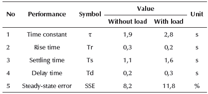 The Simulink block diagram is built and then embedded in the Arduino Mega 2560 microcontroller for data retrieval. The data is taken in the form of steps and a trajectory following input and output in terms of time. Tests are carried out with and without load so that the data is obtained, which is then carried out data plots. Figure 10 shows the step signal input and output plots with respect to time.