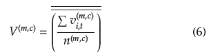 where n(m,c) is the number of motorcycles (n(m)) or cars (n(c)), and Lsim is the length of the simulated track (7 500 m). A double average is applied to decrease the influence of the initial condition, one on time and other between simulations. Similarly, the average speed of the vehicles, V(m,c) [m/s], Equation (6), is given by the double average among all the vehicles on the track in the last 1 000 seconds of 30 simulations.